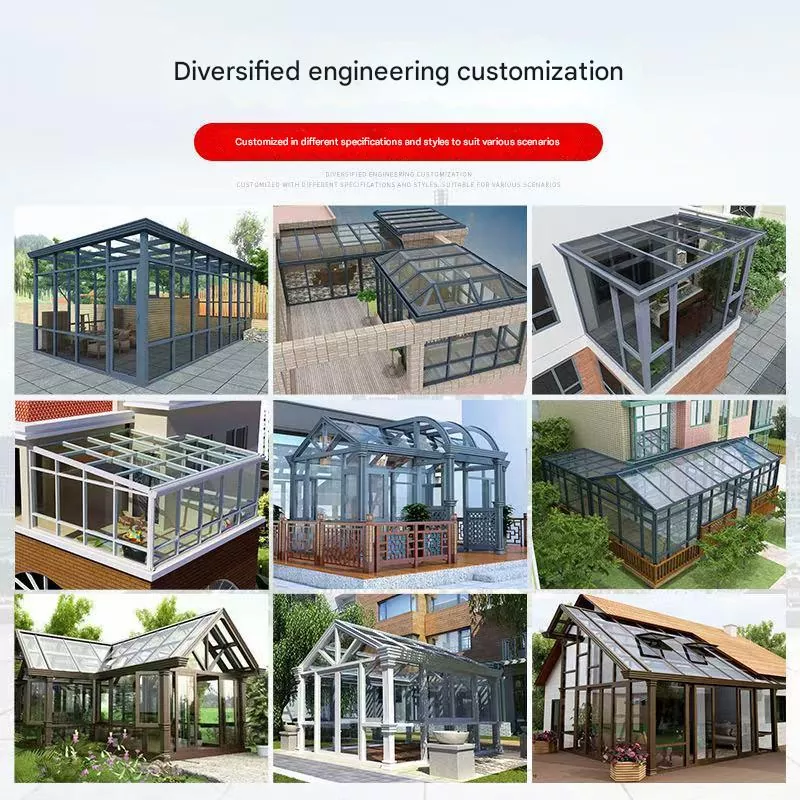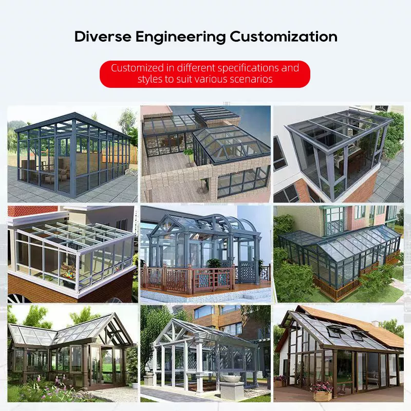 நெகிழ்வான தனிப்பயனாக்கம்: கூரை பாணிகள், அளவுகள், வண்ணங்கள், கண்ணாடி வகைகள் மற்றும் பாகங்கள் தனிப்பயனாக்கலாம்